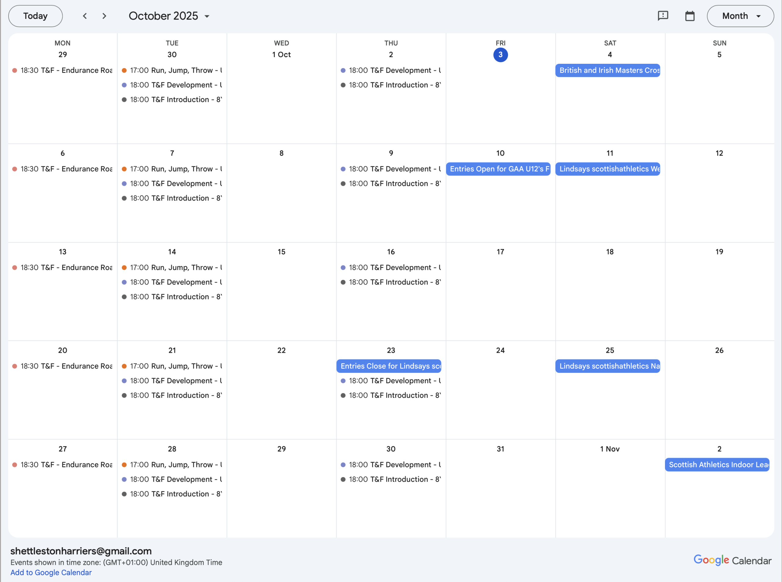 We look forward to seeing you out there representing the blue and gold of Shettleston Harriers over the winter.